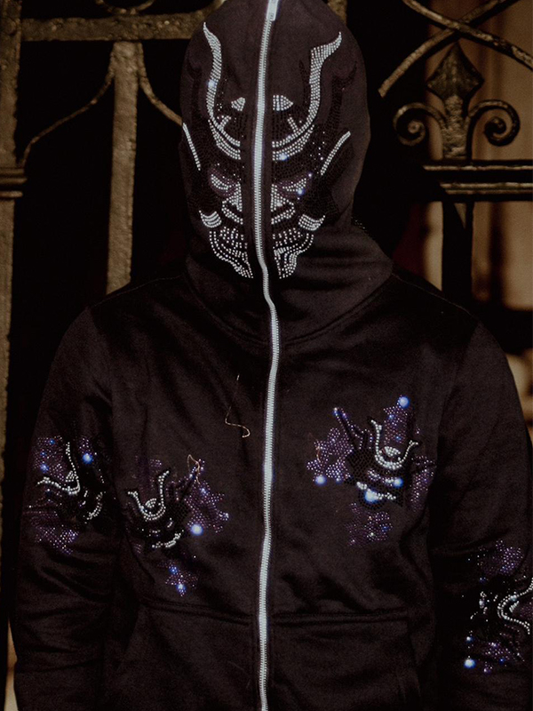 Men’s Skull Print Oversized Long Sleeve Hoodie