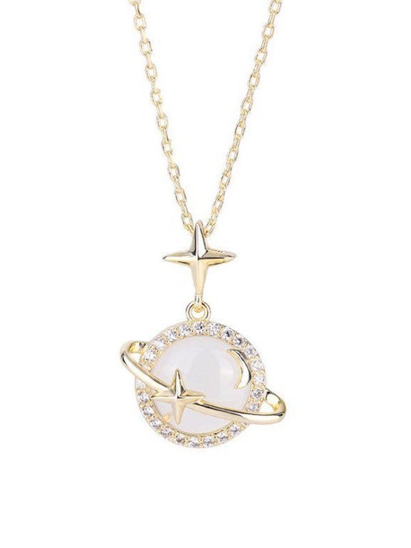 Rhinestone Cosmos Planet Charm Cuff Ring