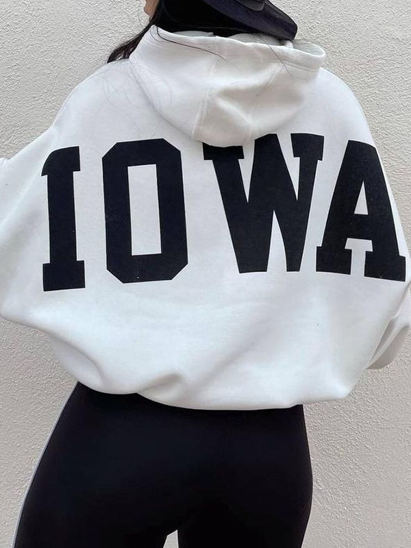 Letter Print Short Oversized Hoodie