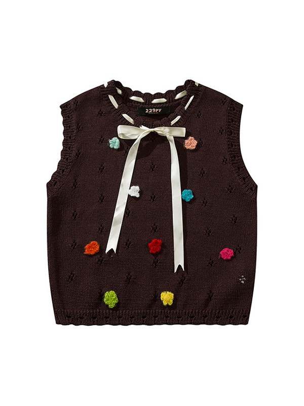 Retro Ribbon Bow Knitted Tank Top