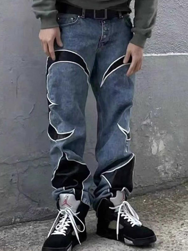 Men’s Colorblock Print Loose Jeans