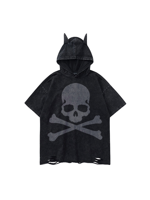 Men’s Skull Hooded Oversized Long Sleeve Tee