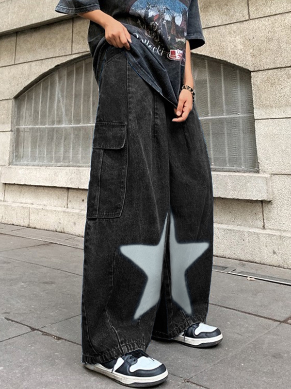 Men’s Star Print Big Pocket Cargo Jeans