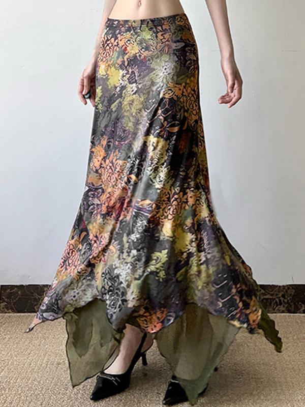 Mori Botanical Floral Print Maxi Skirt
