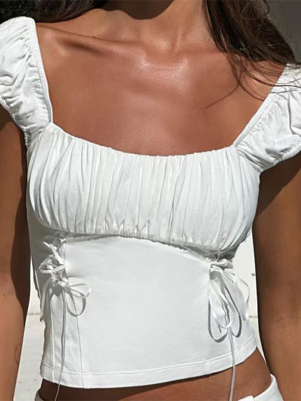 Ruched Drawstring Backless Short Sleeve Tee