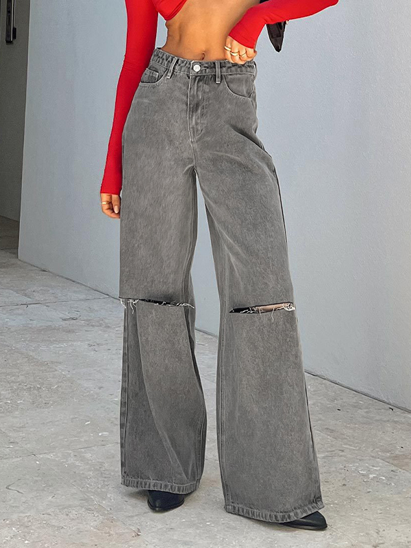 Gray Wash Ripped High Rise Boyfriend Jeans