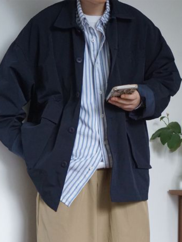 Men’s Versatile Solid Color Lapel Neck Big Pocket Jacket