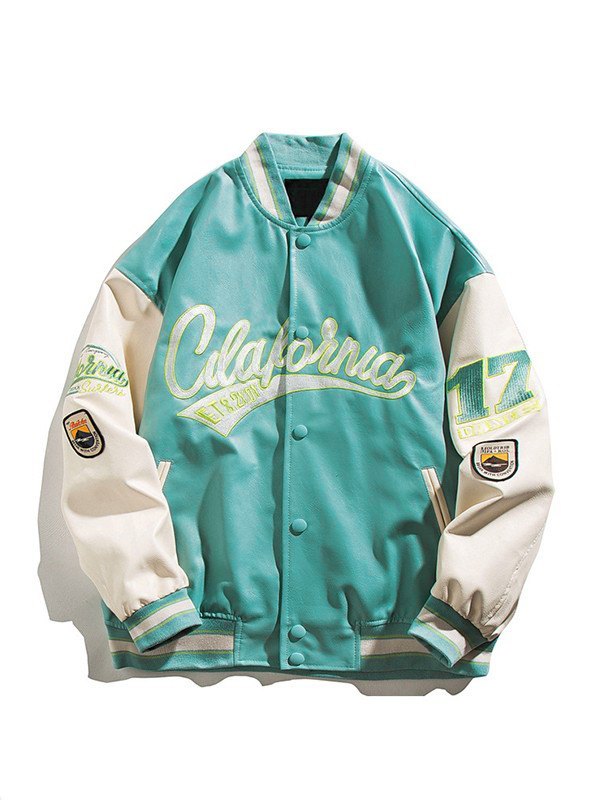 Men’s Embroidered Pu Leather Varsity Jacket