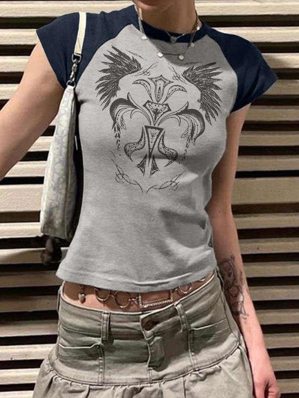 Vintage Wing Print Raglan Short Sleeve Tee