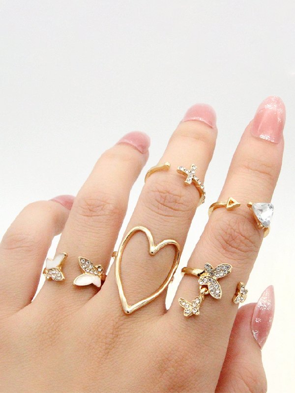 5pcs Rhinestone Decor Cuff Ring