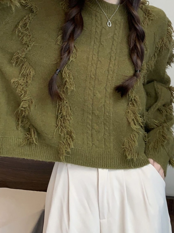 Solid Tassel Cable Knit Sweater