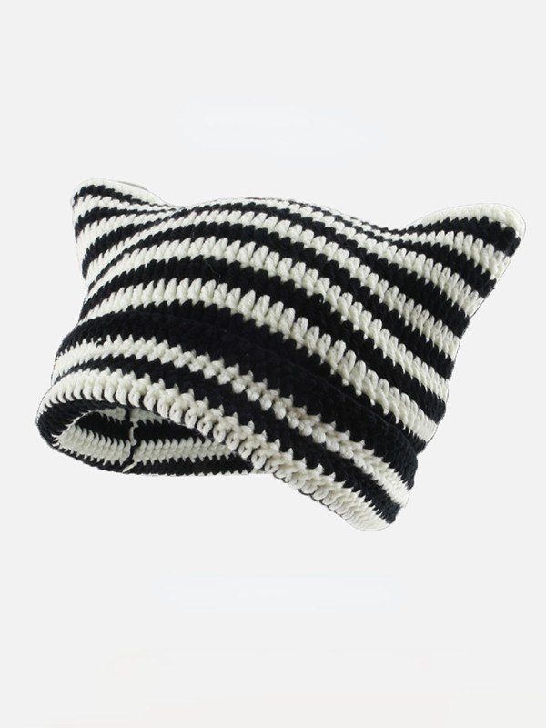 Ear Design Contrast Striped Beanie Hat
