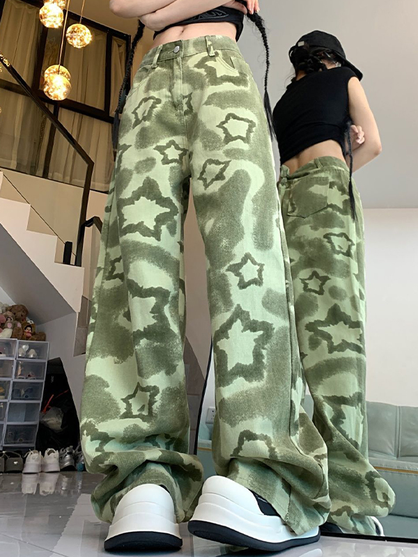 Green Camouflage Work Clothes Boyfriend Jeans