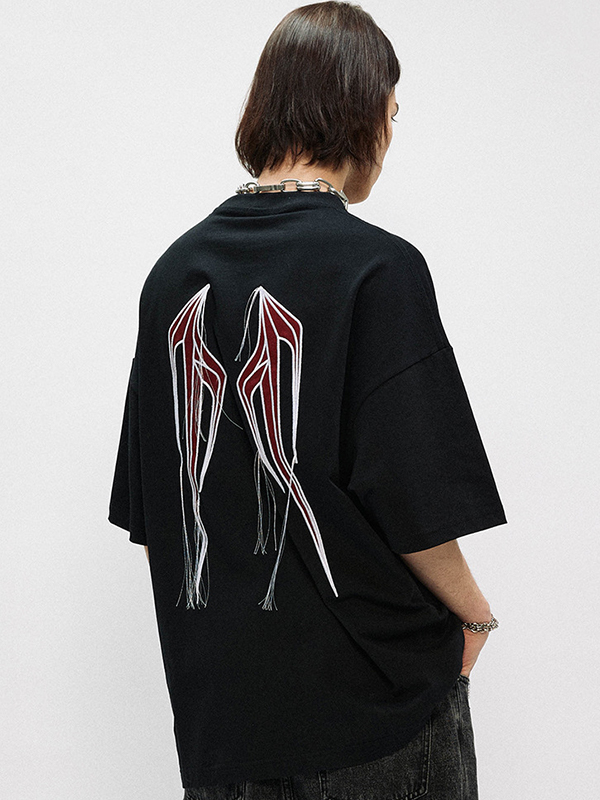 Men’s Unisex Wing Print Oversized Short Sleeve Tee