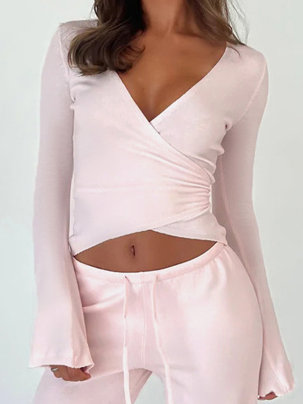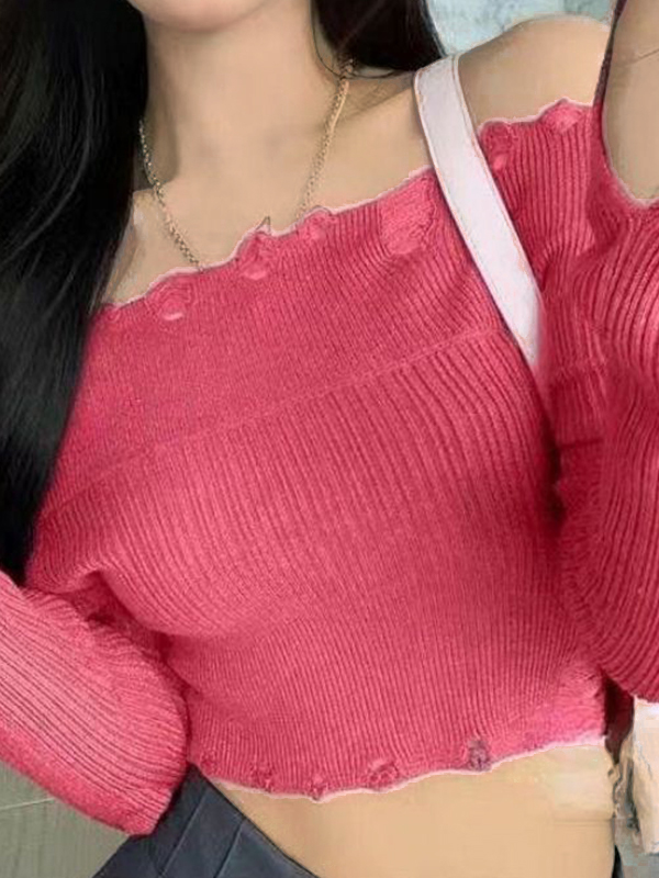 Solid Tattered Off Shoulder Long Sleeve Knit