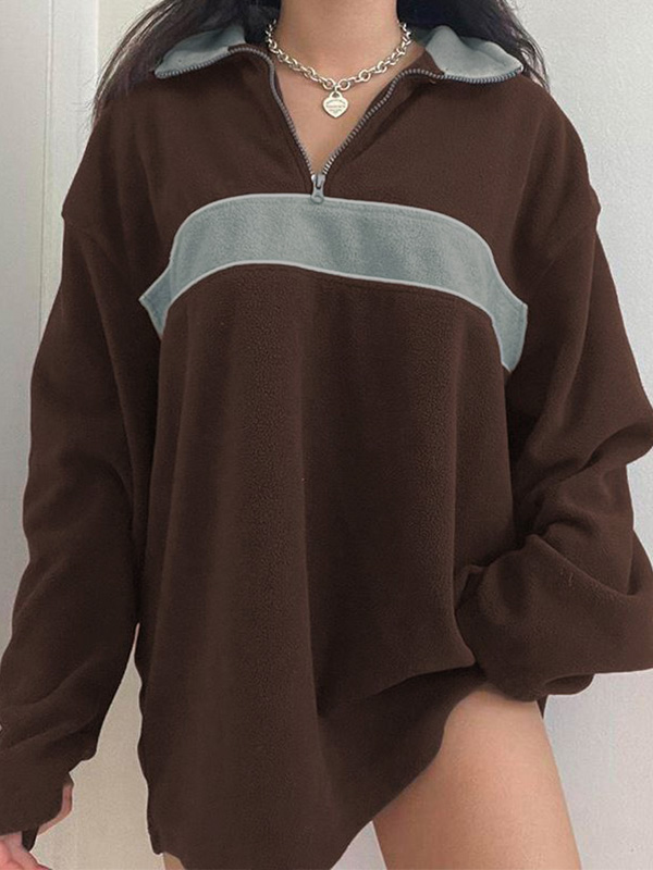 Description: Features contrast fleece paneled at front and collar, with a longline fit, dropped long sleeves and a half zip fasten design.