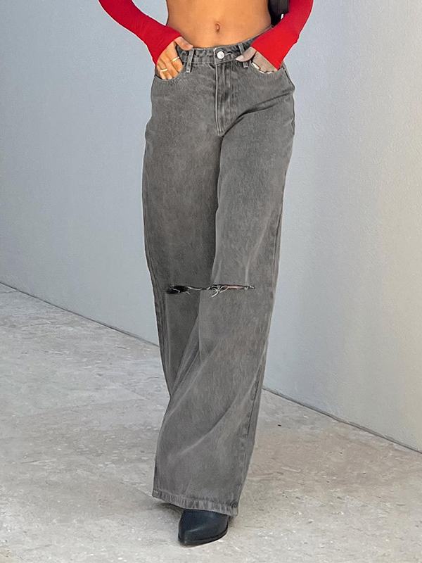 Unique Gray Wash Design: These jeans feature a distinctive gray wash, giving them a cool and edgy look that stands out from the usual blue and black denim.