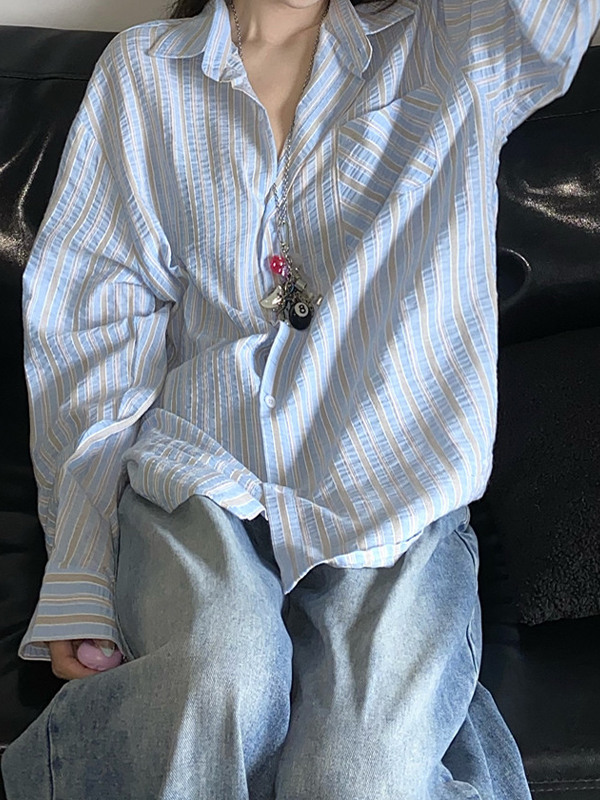 Pinstripe V Neck Breasted Long Sleeve Blouse