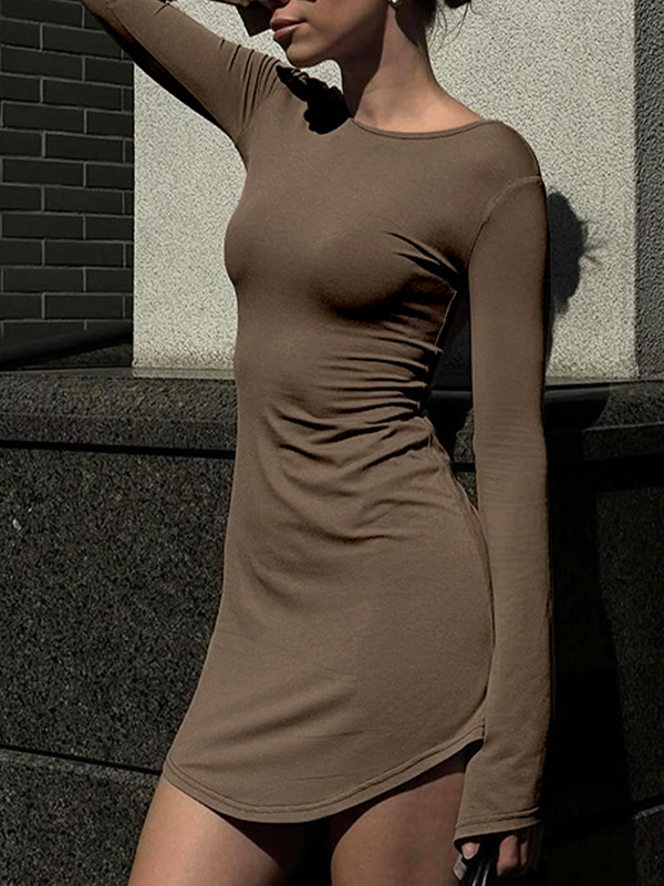 One Shoulder Solid Color Backless Long Sleeves Mini Dresses