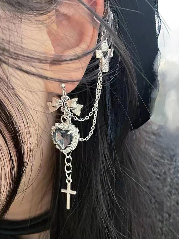Punk Cross Heart Bow Charm Chain Cuff Earring