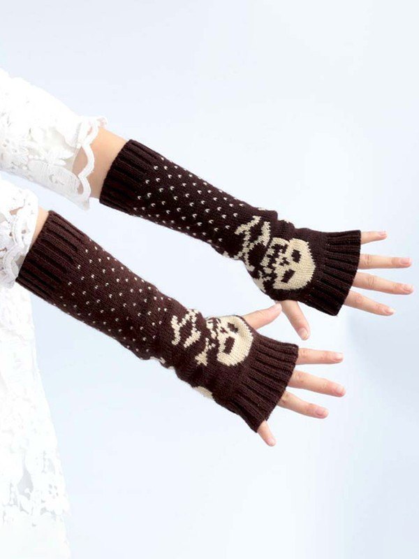 Thumbhole Skull Jacquard Knitted Arm Warmer