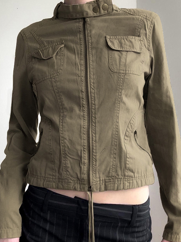 Solid Color Casual Stand Collar Workwear Jacket
