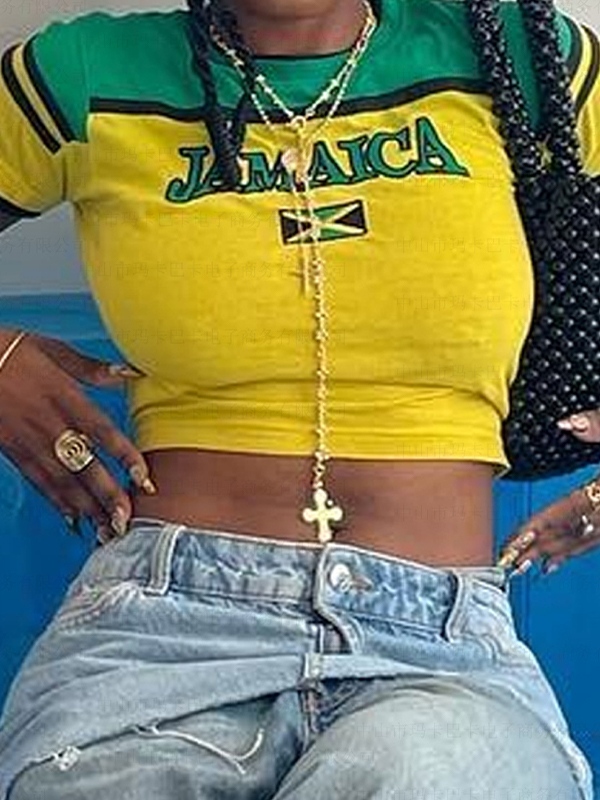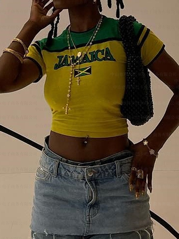 Be the first to review “Contrast Letter Print Color Block Pullover Short Sleeve Tee”