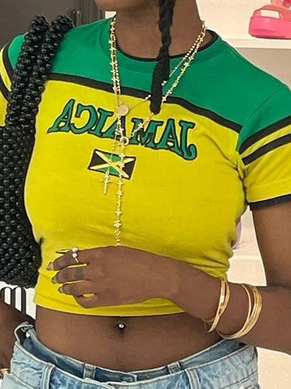 Contrast Letter Print Color Block Pullover Short Sleeve Tee