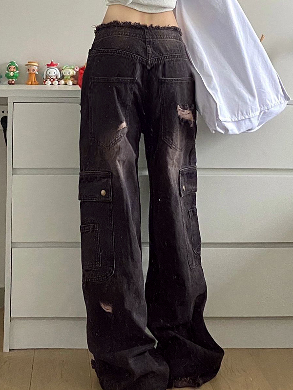 Vintage Distressed Studded Ripped Cargo Jeans